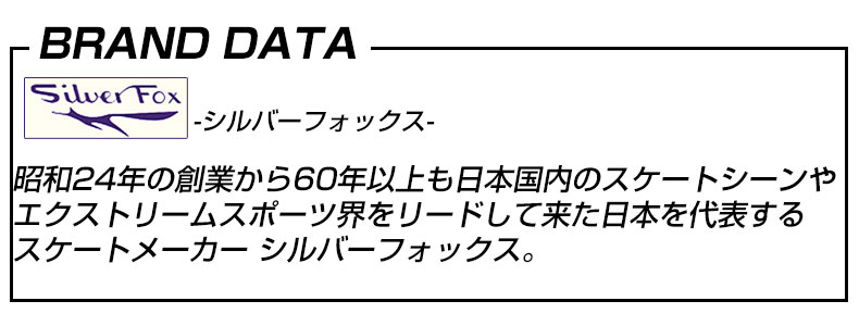 昭和24年の創業から60年以上も日本国内のスケートシーンやエクストリームスポーツ界をリードして来た、日本を代表するスケートメーカー【シルバーフォックス】。